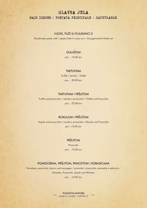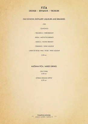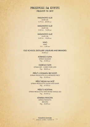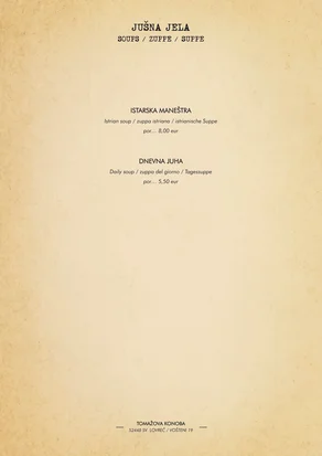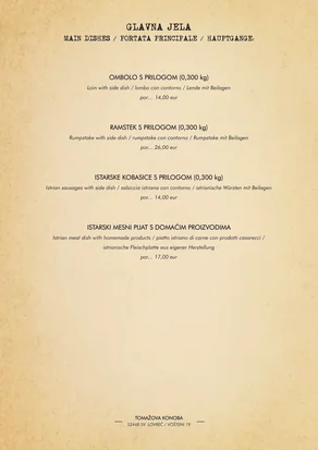 Tomažova's tavern offers Istrian meat and fish delicacies. The food is prepared according to old Istrian recipes.