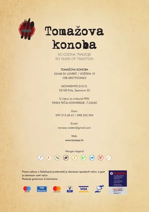 Tomažova konoba (Tomaso's tavern) is not your average restaurant. We serve fresh homemade quality meals, slow food only!